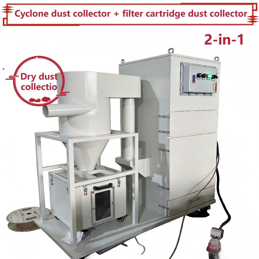 Fordeler: Syklonseksjonen separerer først store flis, noe som reduserer belastningen på filterpatronen; filterpatrondelen fanger effektivt opp fint trestøv og kan utstyres med eksplosjonssikre enheter for å oppfylle sikkerhetskravene.